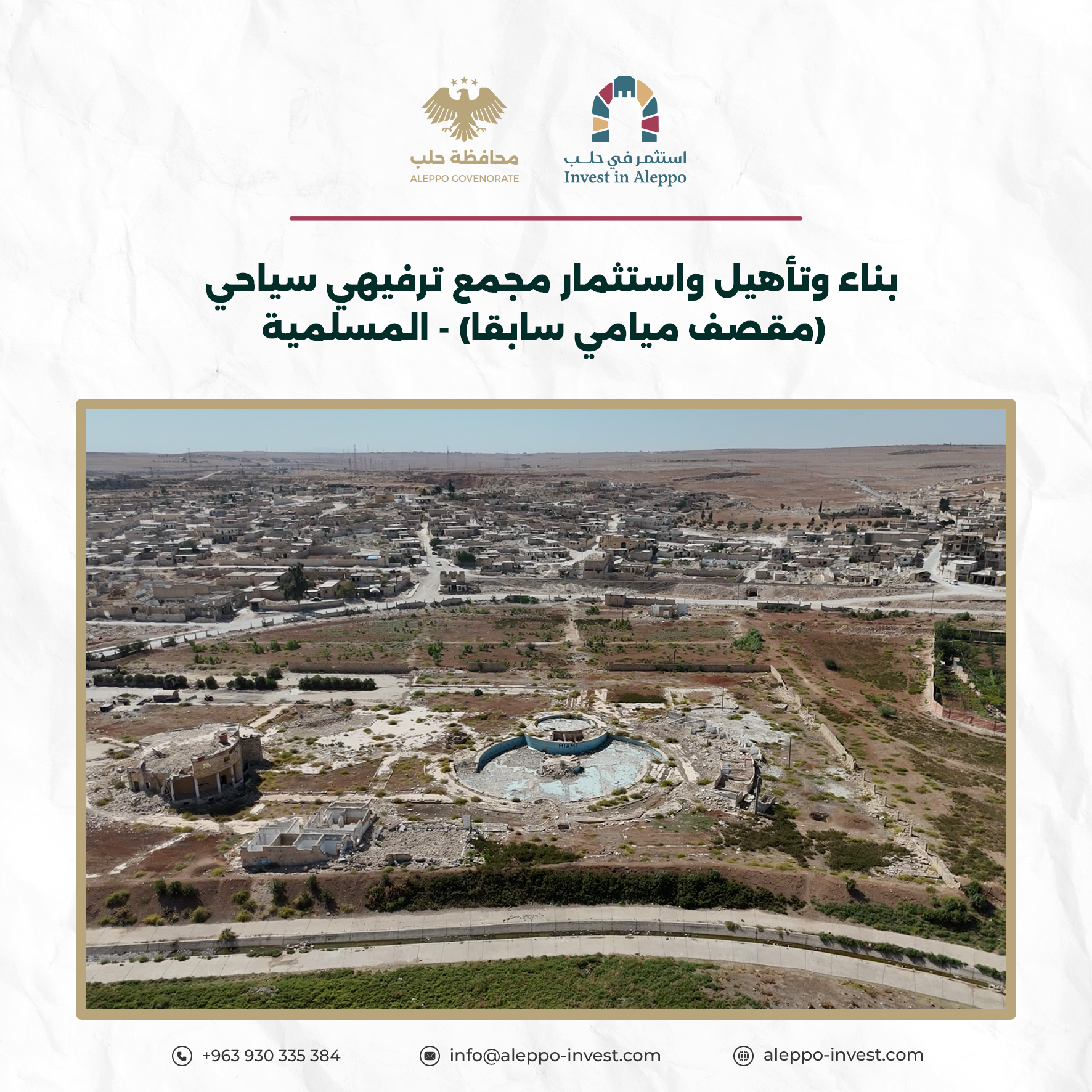 مشروع بناء واستثمار موقع مقصف ميامي في المسلمية على العقار رقم /9167/ م.ع. خامسة في مدينة حلب، وذلك وفق نظام استثمار BOT.